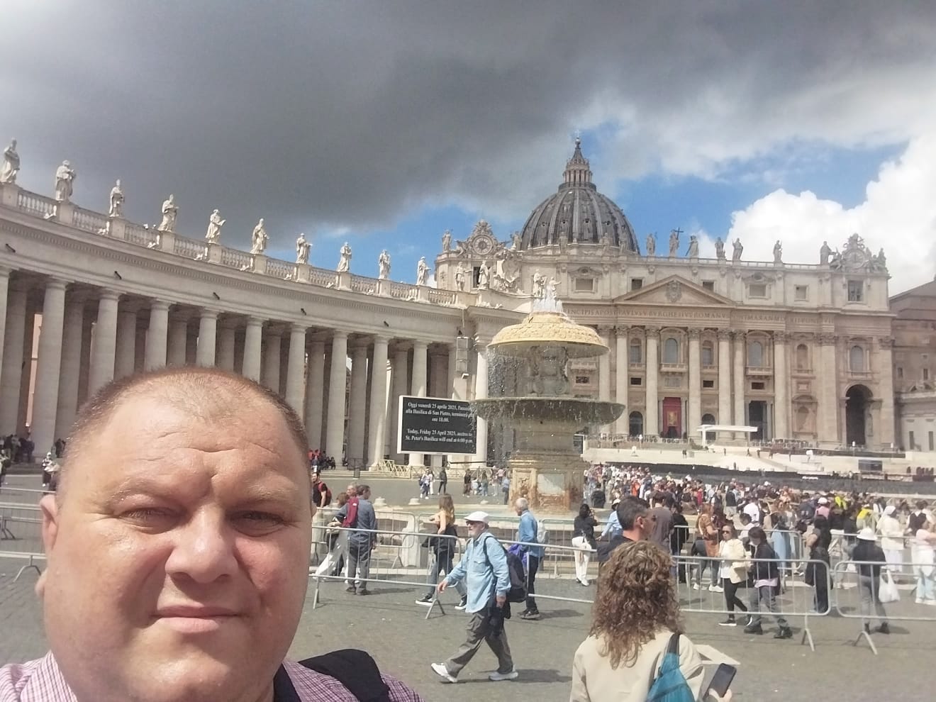 Ajuns în cursul dimineții la Vatican, părintele a fost impresionat de mulțimea ordonată și liniștită. Deși coada de acces spre catafalc se întindea pe mai bine de un kilometru și jumătate, atmosfera era una de rugăciune și comuniune:
