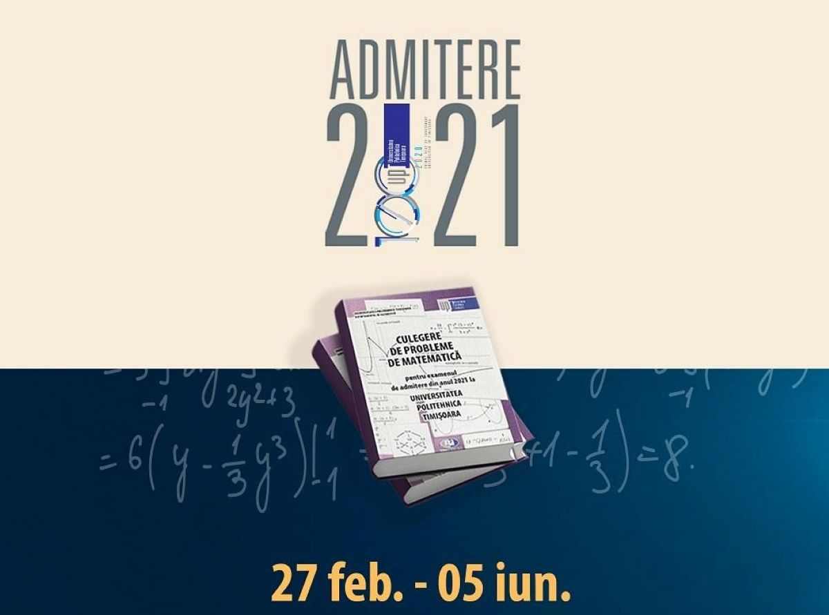 Astfel, pentru admiterea 2021 au început deja cursuri gratuite de pregătire la matematică, în fiecare sâmbătă, începând cu ora 10:00, până în data de 5 iunie, online pe Zoom și live pe pagina oficială de Facebook a Universității Politehnica Timișoara. Mai mult, din acest an Universitatea Politehnica Timișoara pune gratuit la dispoziția elevilor, pe site-ul propriu, în secțiunea dedicată admiterii, a „Culegerii de probleme de matematică pentru examenul de admitere 2021 la Universitatea Politehnica Timișoara” (http://www.upt.ro//img/files/2020-2021/admitere/licenta/Culegere_admitere_UPT_2021.pdf).
