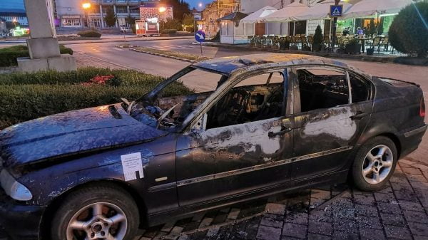 Scene teribile langa Timisoara inainte de ivirea zorilor, sambata dimineata. A fost incendiata o masina parcata in fata unei vile din comuna Giarmatam conform,...