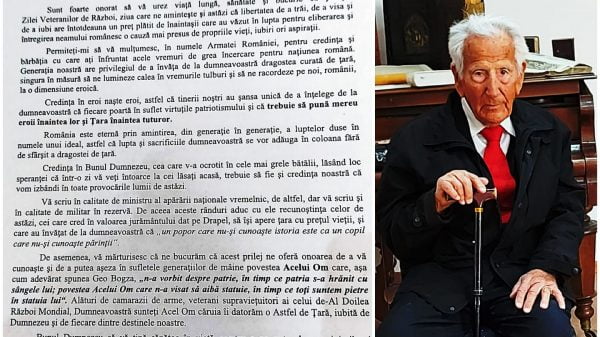 De Ziua Națională a Veteranilor de Război, Ministrul Apărării Naționale, Nicolae – Ionel Ciucă a trimis o scrisoare de mulțumire pentru merite ostășești veteranului...
