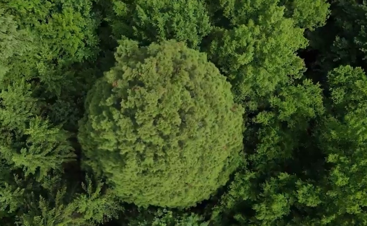Imagini aeriene rare cu arborele gigant Sequoia care s-a dezvoltat în mijlocul unei păduri din Parcul Național Semenic – Cheile Carașului, unul dintre puținele exemplare existente în țara noastră, publicate de reprezentanții Regiei Naționale a Pădurilor Romsilva.